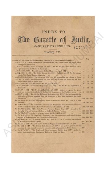 Index to the Gazette of India, January to June, 1877 Pa ...