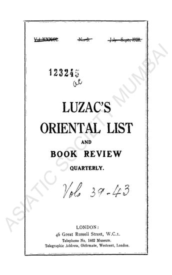 Luzac 's Oriental List and Review Quarterly. Vol. XXXIX ...