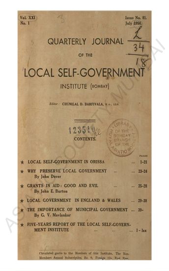 Quarterly Journal of the Local Self-Government Institute(Bombay) …