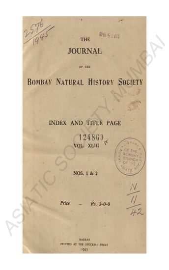 Journal of the Bombay Natural History Society Vol XLIII ...