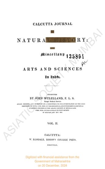 Calcutta Journal of Natural History and Miscellany of t ...