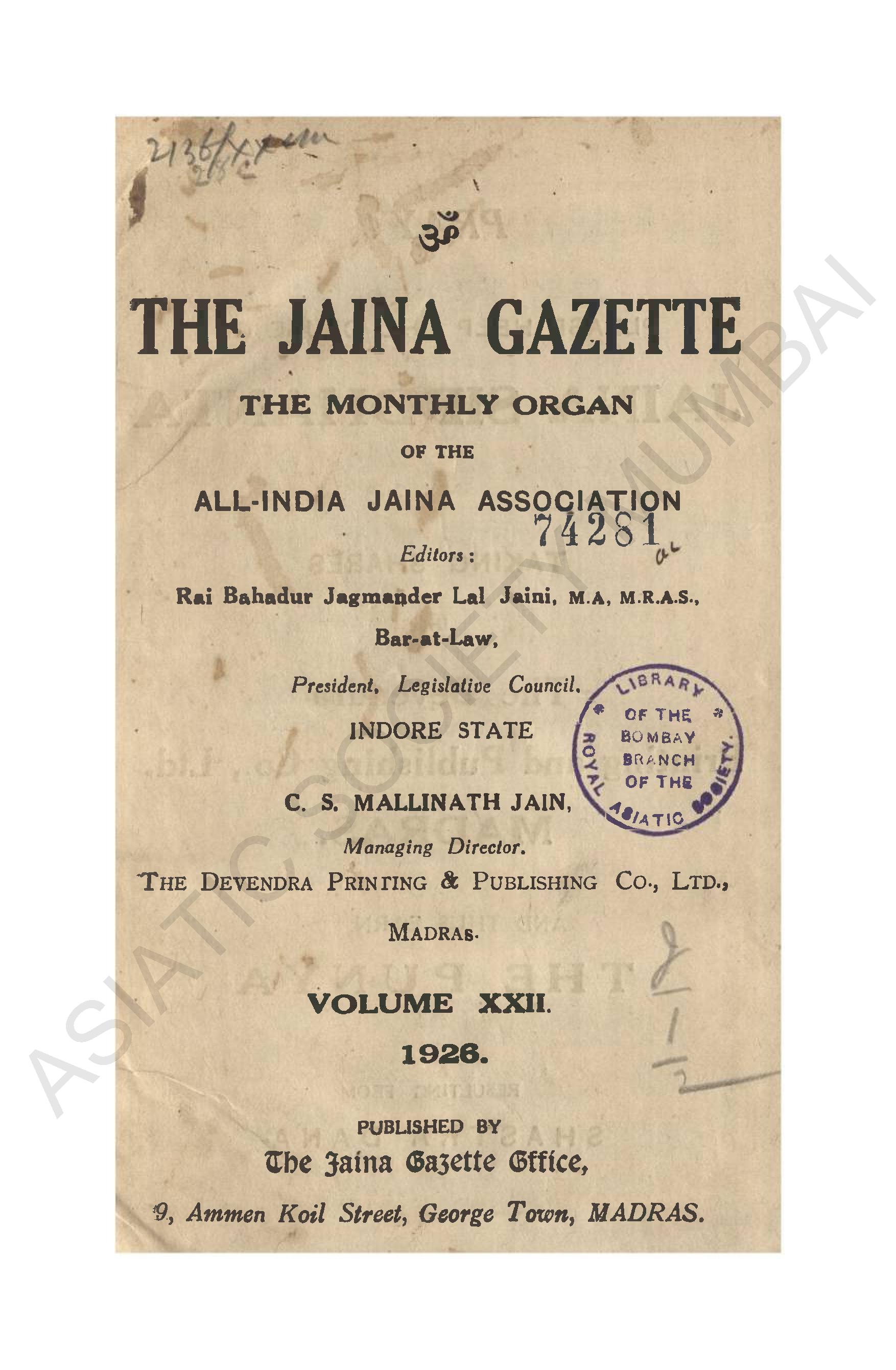 | Publisher | : | The Jaina Gazette office |