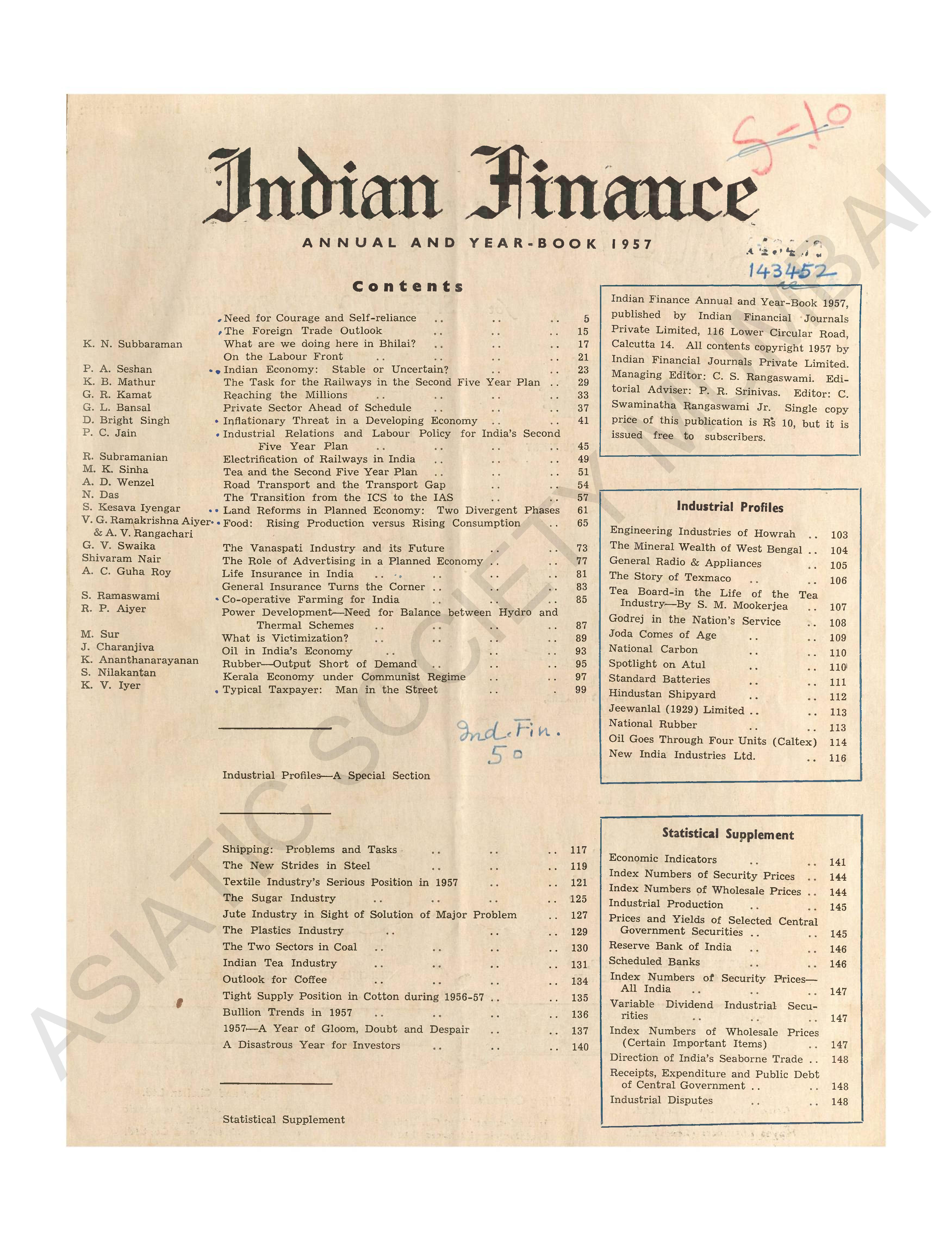 Indian Finance Silver Jubilee Number & Year - Book 1953.