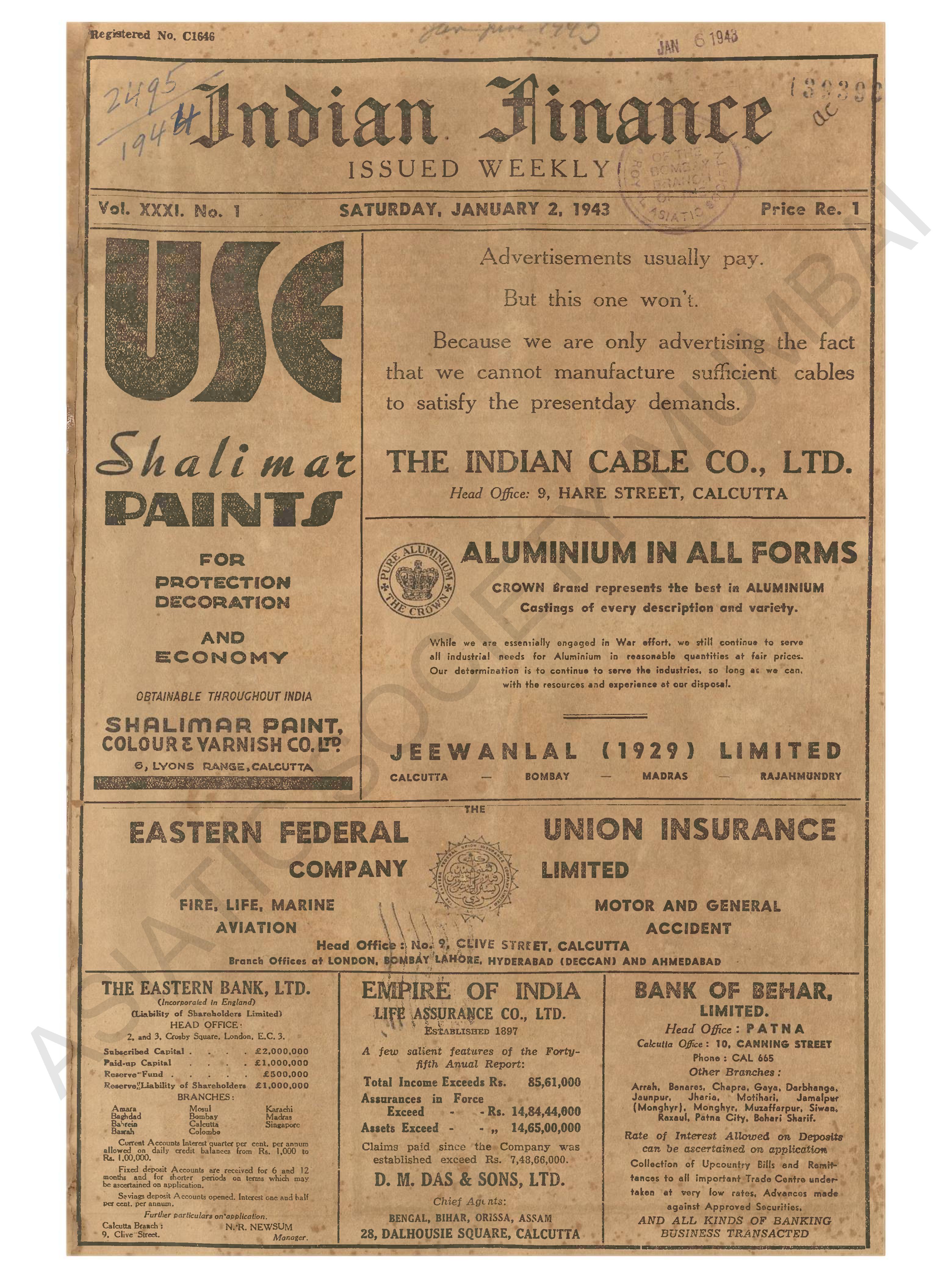 Indian Finance Issued Weekly. Vol. XXXI, January 2, 194 ...