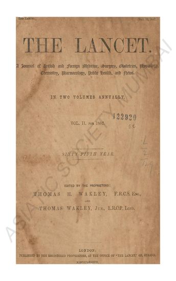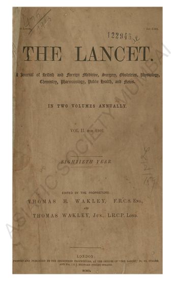 | Publisher | : | The Registered Proprietors, at the Office of the Lancet, 423, Strand. |