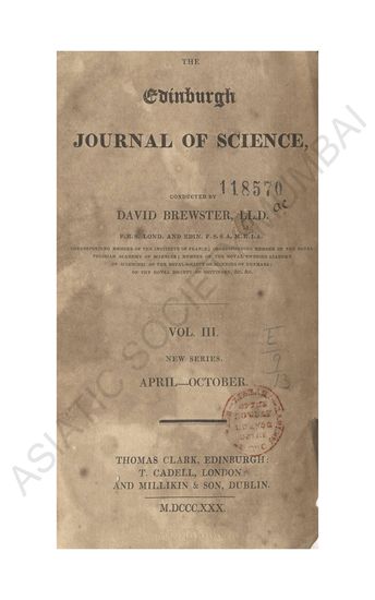 Edinburgh Journal of Science, New Series. Vol III. Apri ...