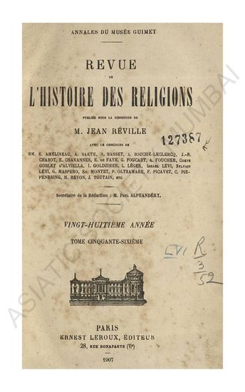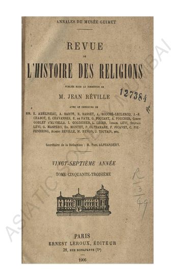 Revue de L'histoire des religions MM. E. AMELINEAU, AUG. AUDOLLENT, A.BARTH, R. BASSET, A BOUCHELECLERCQ, J.B. CHABOT, E. CHAVANNES, P. DECHARME, E. DE FAYE, G. FOUCART, A. FOUCHER, COMTE GOBLET D'ALVLELLA, I. GOLDZIHER, L. LEGER, ISRAEL LEVI, SVLVAIN LEVI, G. MASPERO, ED. MONTET, F. PICAVET, C. PIEPENBRING, ALBERT REVILLE, J. TOUTAIN, ETC..