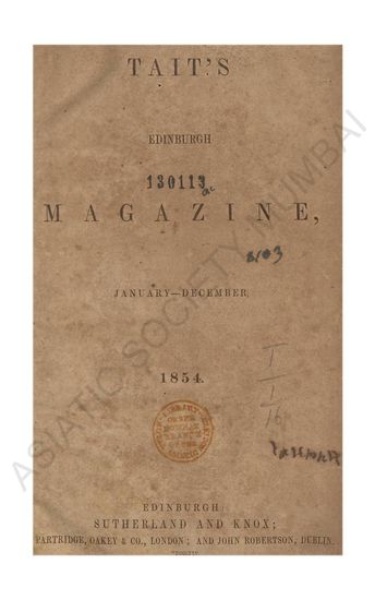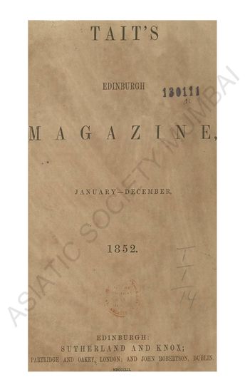 | Publisher | : | Sutherland and Knox; Partridge, Oakey & Co., London; and John Robertson, Dublin |