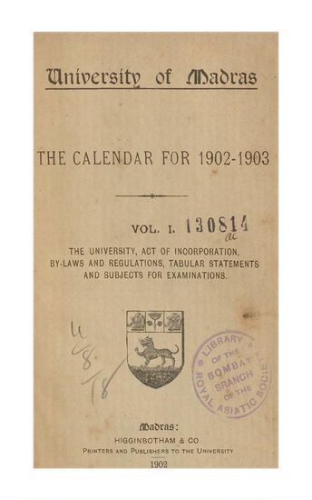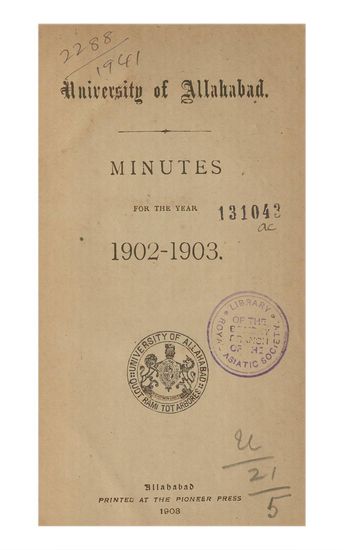 | Subject | : | University of Allahabad Calendar for the academic year 1902-1903 |