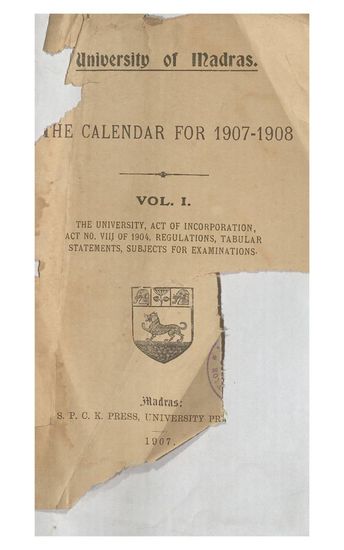 | Subject | : | University Calendar for the academic year 1907-1908. |