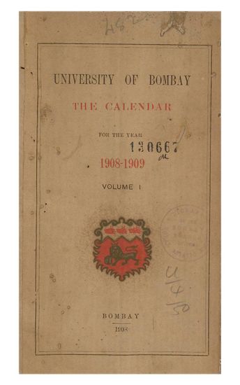 University of Bombay Calendar For Year 1909-1910, Volume I.