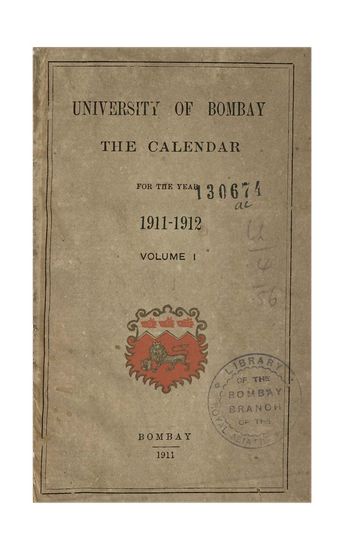 University of Bombay Calendar for Year 1911-1912, Volum ...