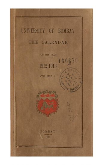 University of Bombay Calendar for 1912-1913, Volume II Examination Papers of 1911-1912.