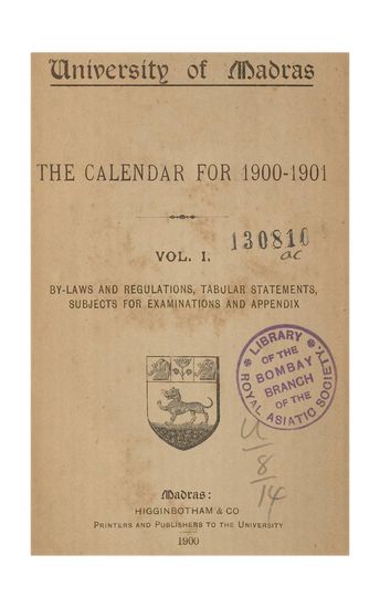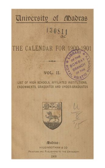 | Publisher | : | Higginbotham & Co., Printers and Publishers to the University |