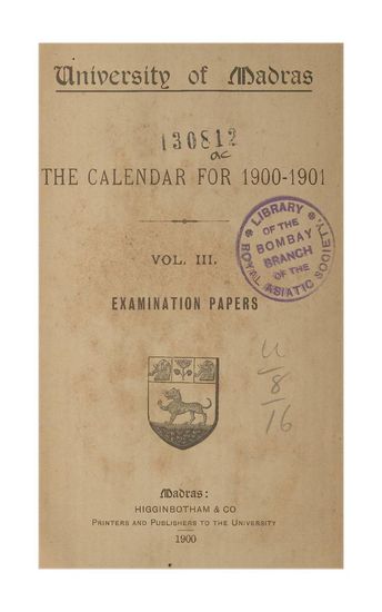| Publisher | : | Higginbotham & Co., Printers and Publishers to the University |