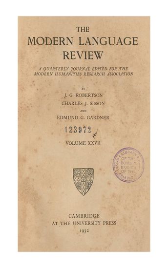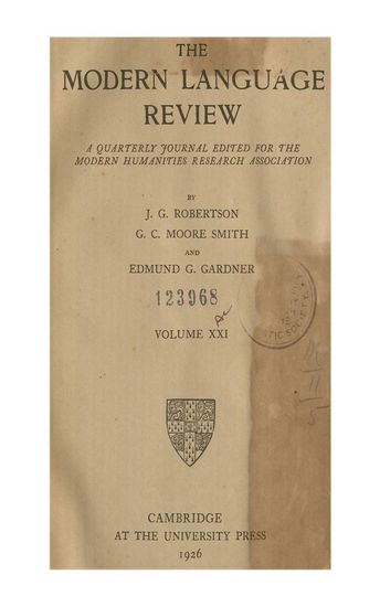 | Subject | : | A quarterly journal edited for the Modern Humanities Research Association |