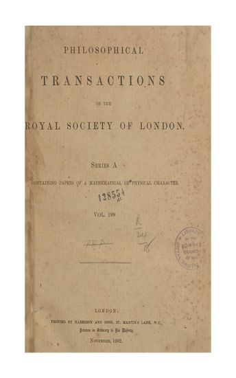 | Subject | : | Containing Papers of a Biological Character |