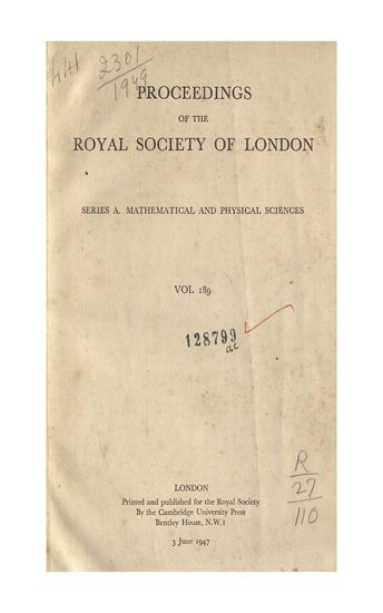 | Subject | : | Series A-Mathematical and Physical Sciences |