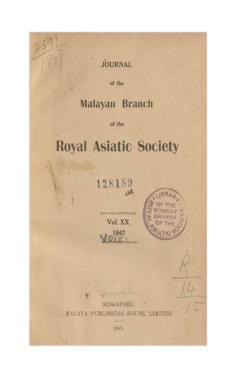 Journal of the Malayan Branch of the Royal Asiatic Soci ...