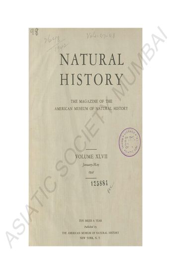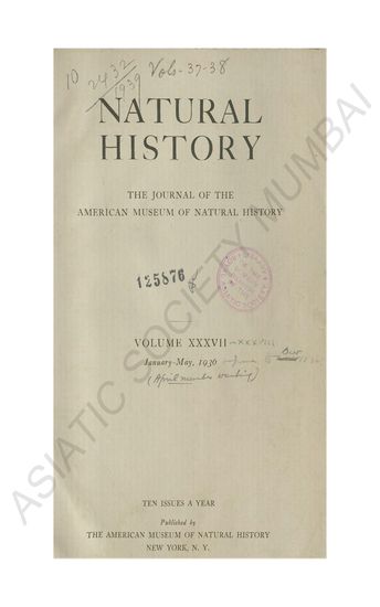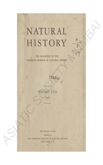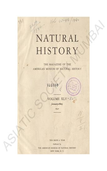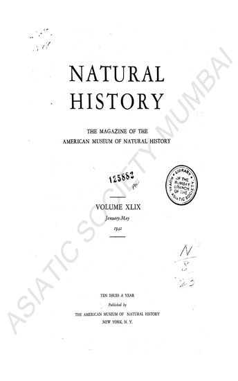 | Subject | : | Natural History - Magazine of the American Museum of Natural History, includes articles on various topics such as White-mantled Colobus Monkeys, Norwegian Sealers, Egrets, snowstorms, insects in winter, birds of New Caledonia, and new book information. |