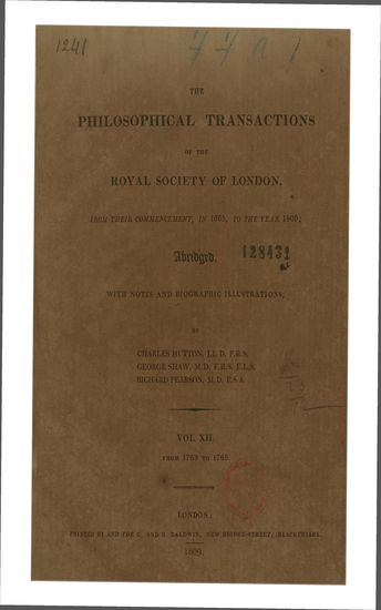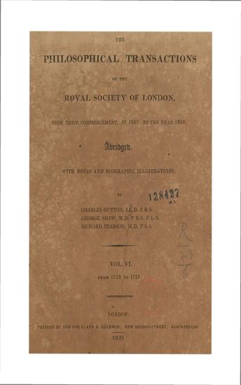 | Subject | : | Philosophical Transactions, Abridged versions with notes and biographic illustrations |