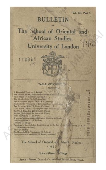 | Publisher | : | The School of Oriental Studies, London Institution. Agents: Messrs. Luzac & Co., 46 Great Russell Street, W.C.1. |