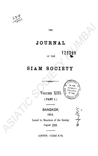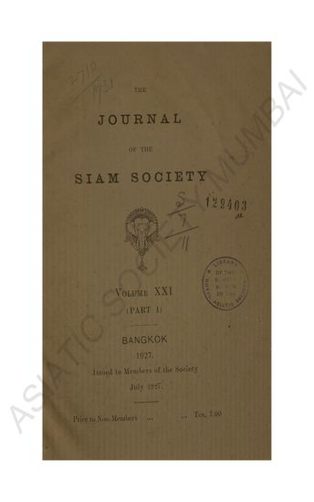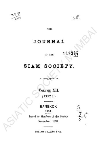 | Subject | : | The Investigation and Encouragement of Arts, Science and Literature in relation to Siam and neighbouring countries. |