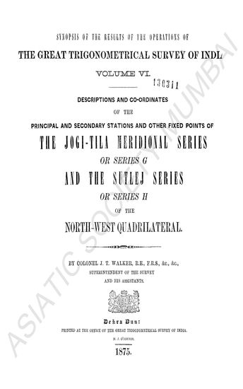 | Publisher | : | Printed at the Office of the Great Trigonometrical Survey of India, M. J. O'Connor |