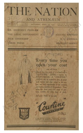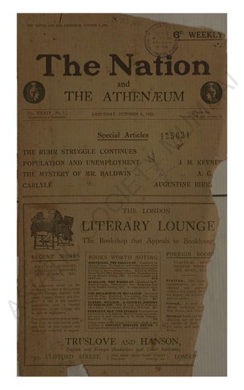 | Subject | : | Weekly periodical discussing topics such as the Dawes Scheme, political events, literary critiques, reviews, and domestic publications. |