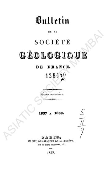 Bulletin de la Socit GÃ ologique de France, Tome neuv ...