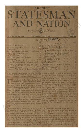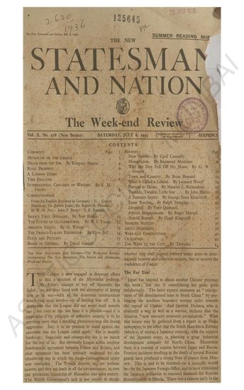 | Subject | : | Articles on politics; reviews; plays and cultural commentary including topics like Russian Pride and British Prejudice; art reviews such as Matisse and Picasso; health and eugenics. |