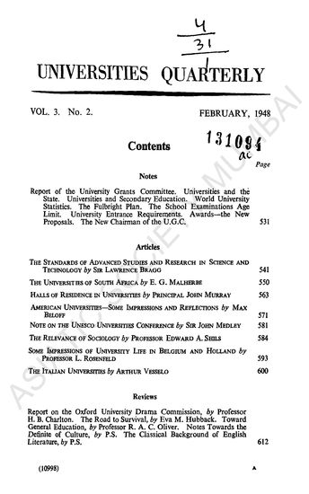 UNIVERSITIES QUARTERLY, VOL. 3. No. 2. FEBRUARY, 1948