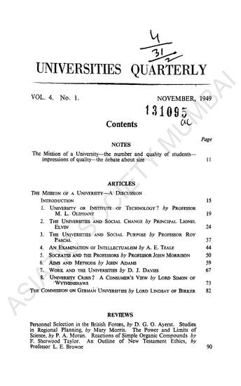 Universities Quarterly, Vol. 4, No. 1, November 1949