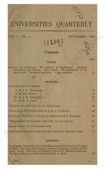 Universities Quarterly, Vol. 6, No. 1, November 1951