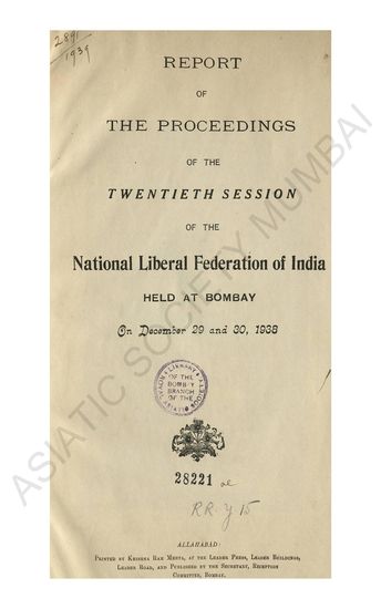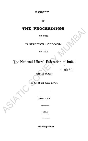 | Subject | : | Proceedings of the National Liberal Federation of India |