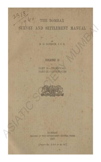 | Subject | : | System of Measurement and Classification under the Revenue Survey of the Bombay Presidency |