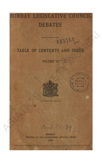 | Subject | : | The Government of India Act and the rules thereunder for the Bombay Legislative Council |