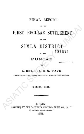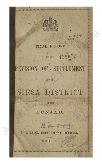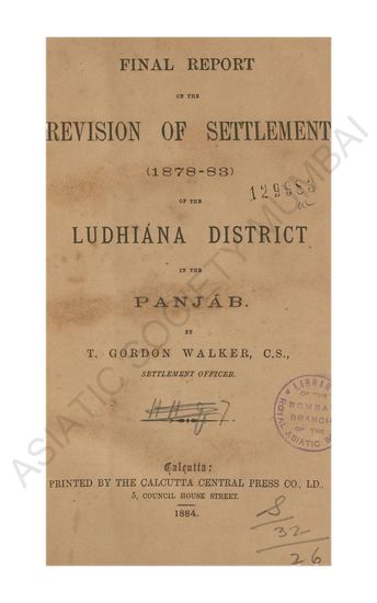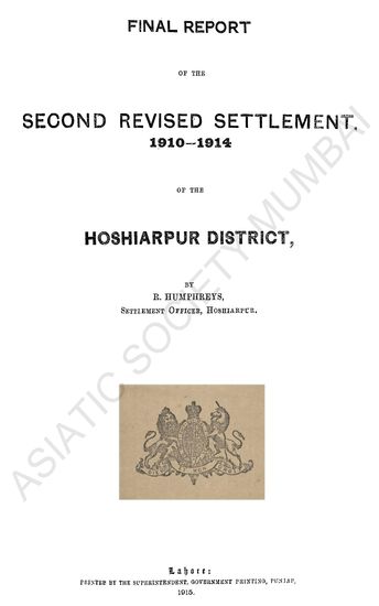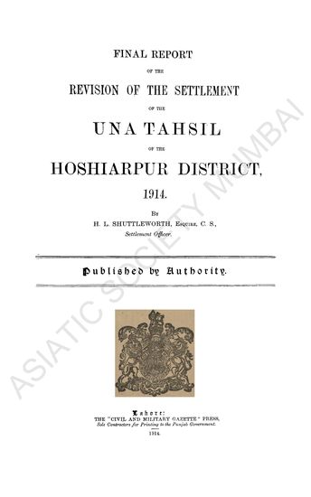 | Subject | : | Settlement Report for Ferozepore District, Punjab, during 1910-1914 |