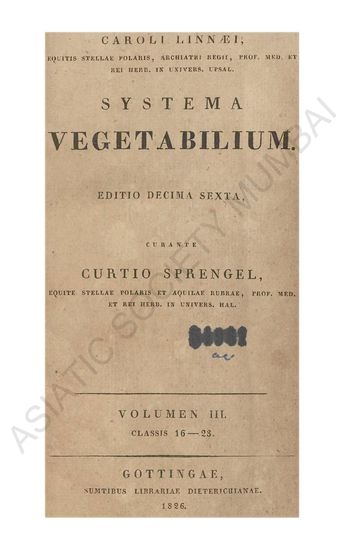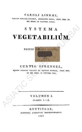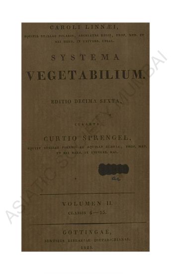 | Subject | : | Botanical system and index of genera, species, and synonyms as organized by Carl Linnaeus |