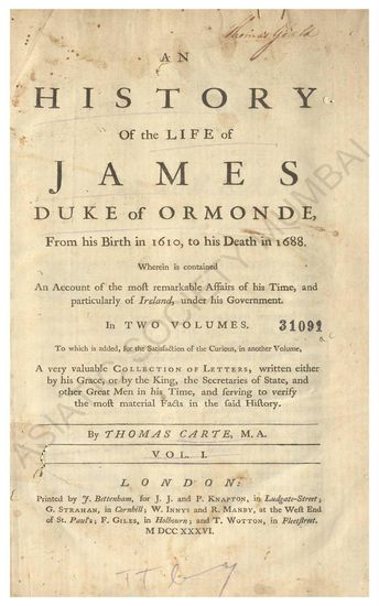 | Subject | : | History; An account of the most remarkable affairs of his time, particularly of Ireland under his government |