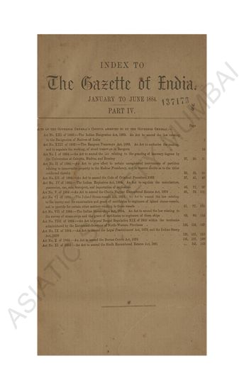 | Subject | : | Acts of the Governor General's Council assented to by the Governor General |