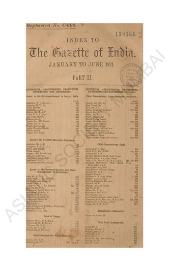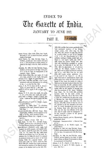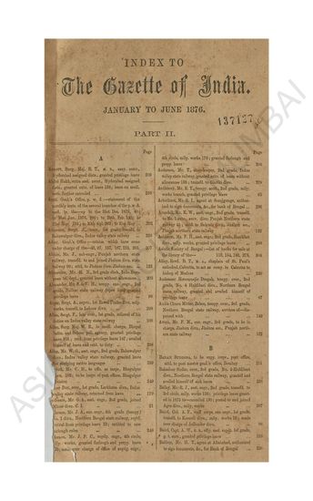 Index to the Gazette of India, January to June, 1876 Pa ...