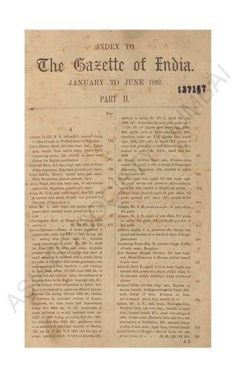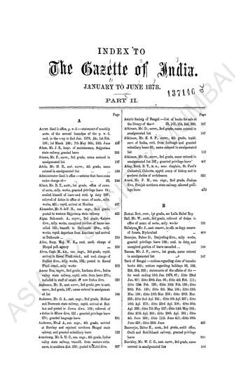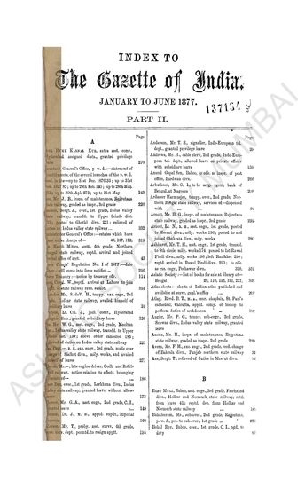 Index to the Gazette of India, January to June, 1877 Pa ...