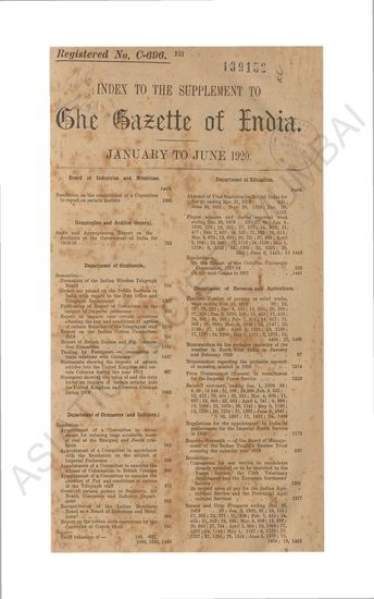 Index to The Gazette of India, Extraordinary. January To June 1920.