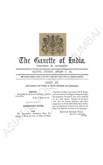 | Subject | : | Government of India Notifications, Appointments, Promotions, Legislative, Home, Judicial, Ecclesiastical, Education, Revenue, Agricultural |