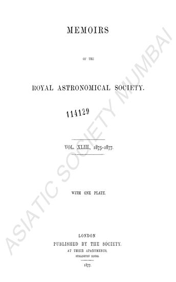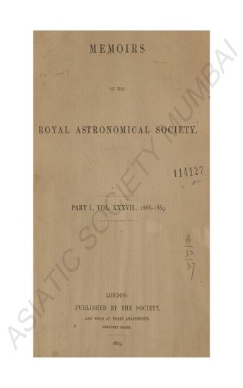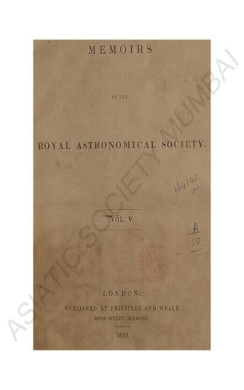 | Subject | : | Astronomy; includes mean north polar distances of Rigel, details of Encke's Comet, and micrometrical measurements |
