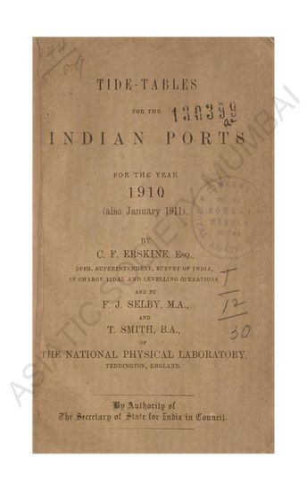 | Subject | : | Tide Tables for Indian Ports including details about specific ports like Suez, Karachi, Bombay, and more. |