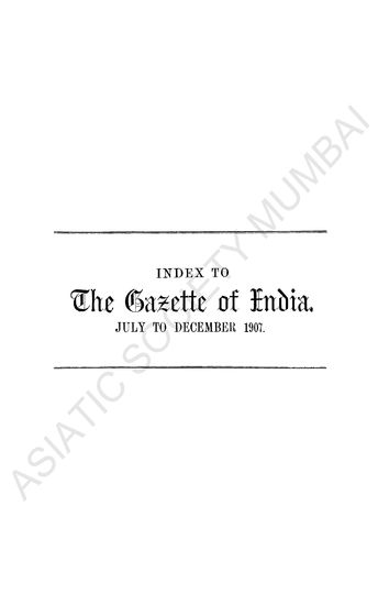 Index to The Supplement to The Gazette of India, July to December 1907.