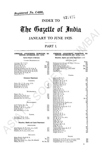 | Subject | : | Government Gazette, Index of Admissions, Appointments, Promotions, Retentions and Reversions |