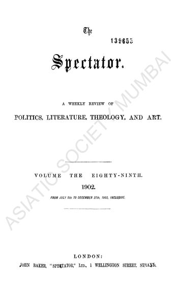 | Publisher | : | John Baker, 'Spectator,' Ltd., 1 Wellington Street, Strand. |